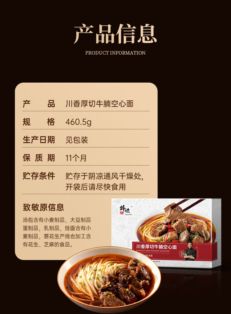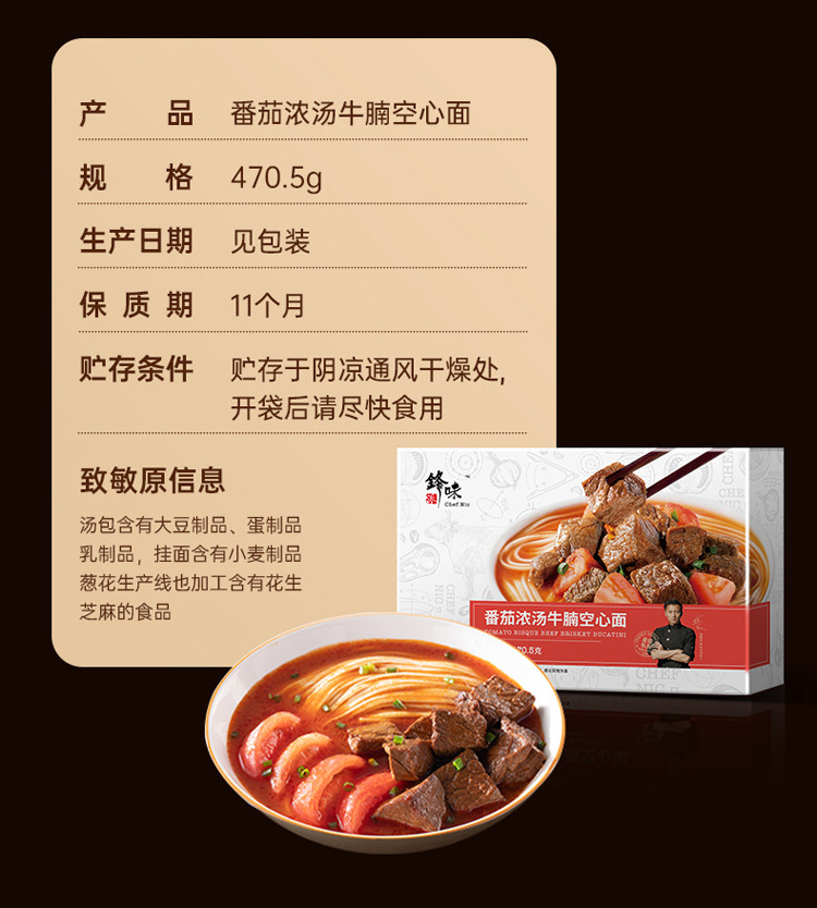 锋味派川香厚切牛腩空心面牛肉面番茄拉面非油炸方便面条速食品