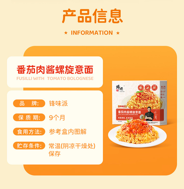 3盒锋味派意大利面番茄肉酱螺旋面番茄牛腩空心面三重奏3人份