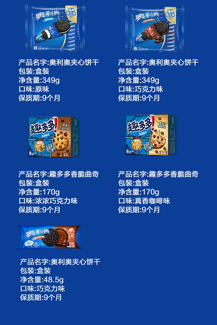 夹心饼干巧克力原味趣多多香脆曲奇咖啡味共1329g