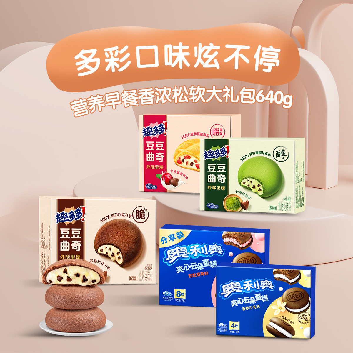 夹心云朵蛋糕趣多多豆豆曲奇独立包装早餐下午茶糕点多口味可选