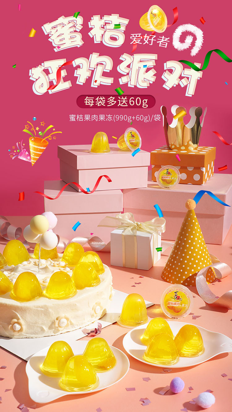 果肉果冻蜜桔味990克大袋30克*33杯加60g共35杯休闲