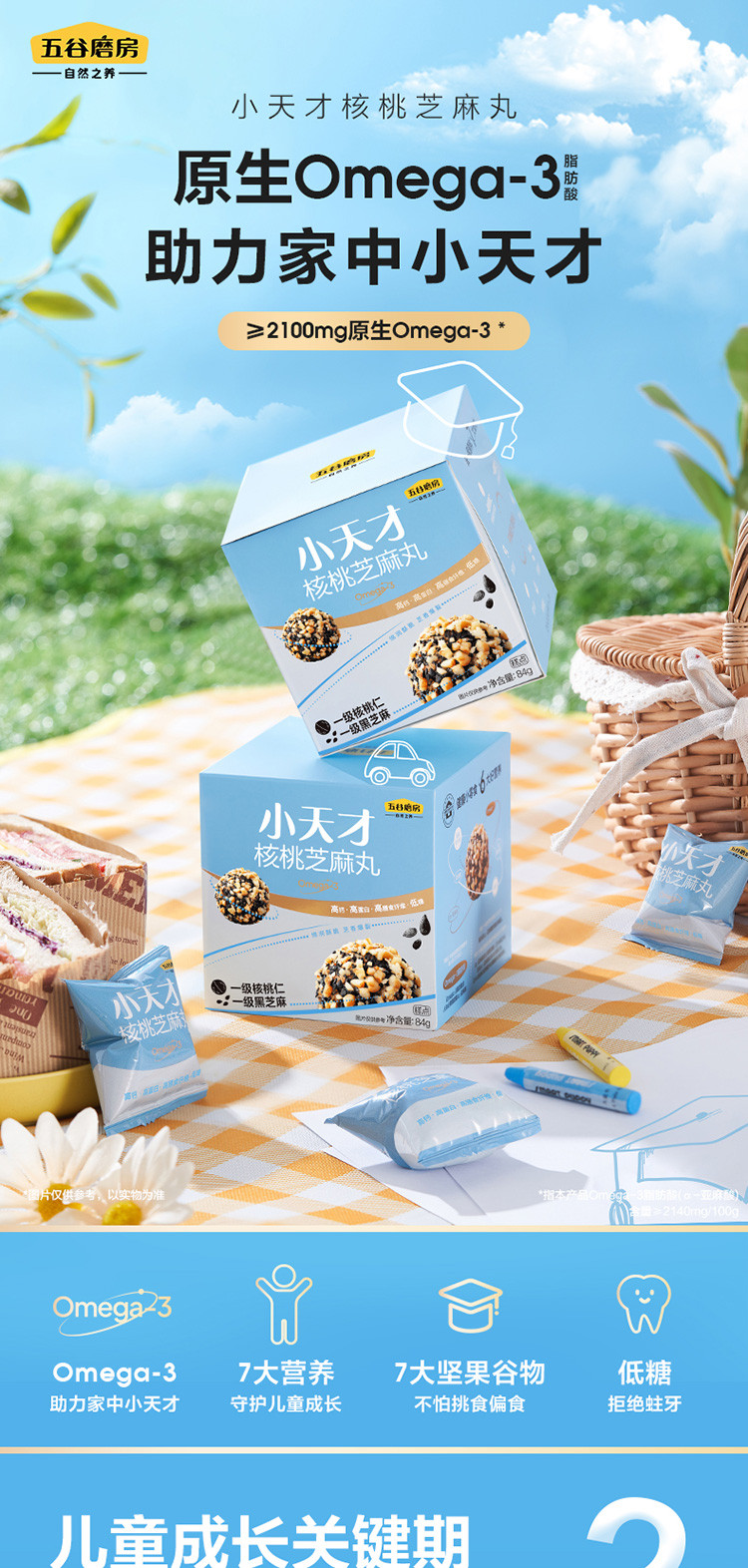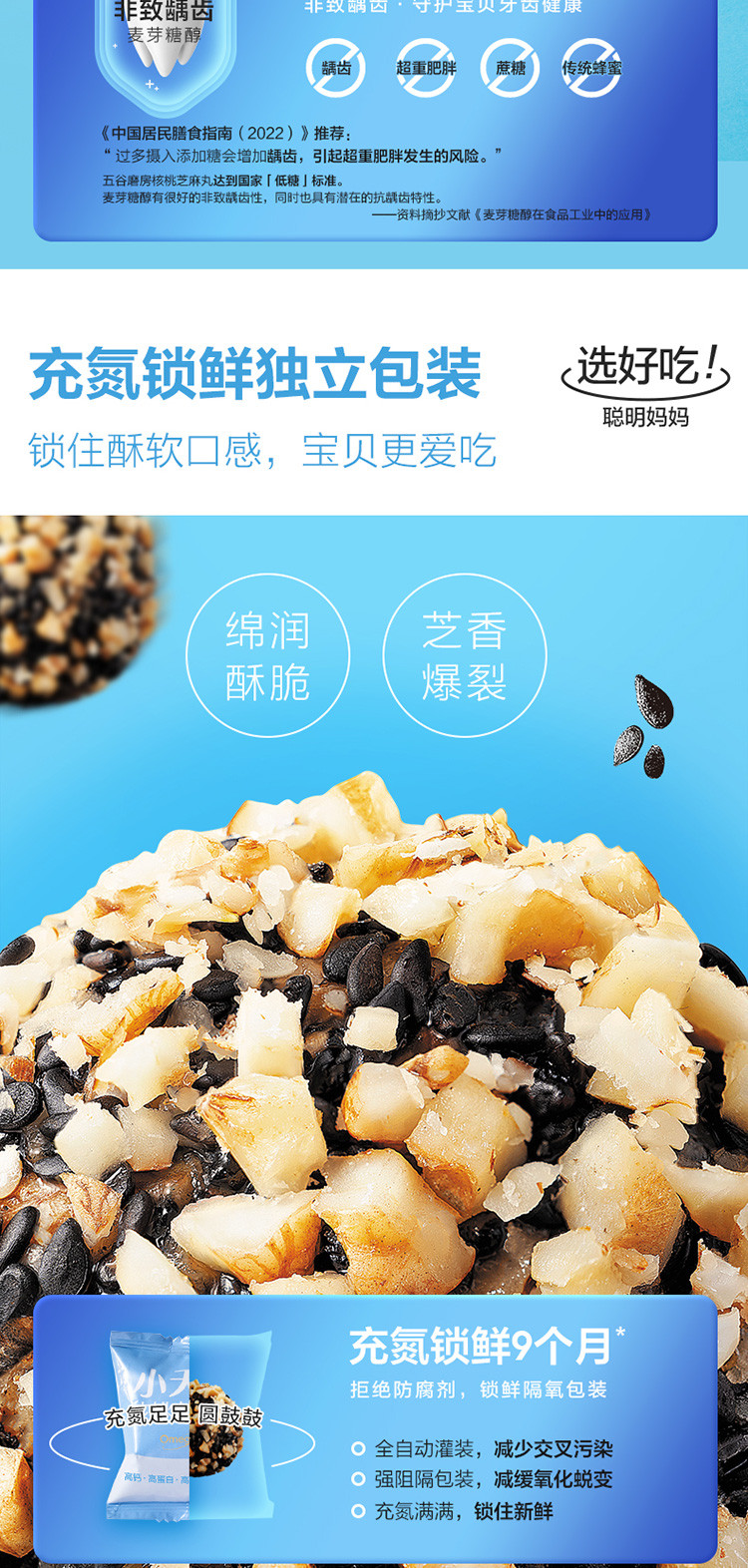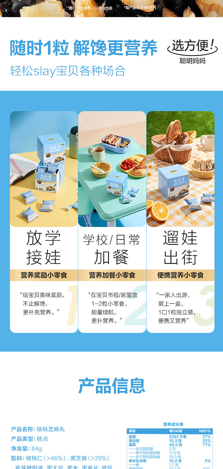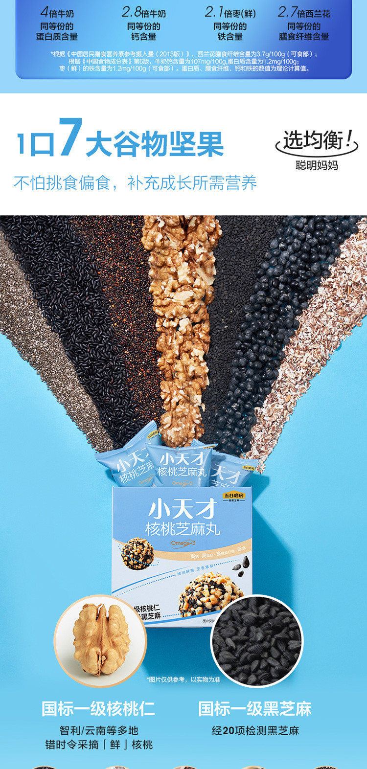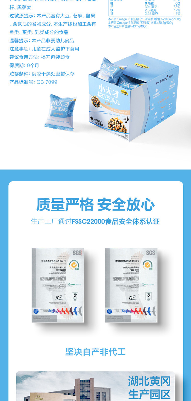 【5盒装】小天才核桃芝麻丸儿童谷物坚果健康小零食丸子