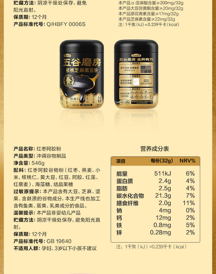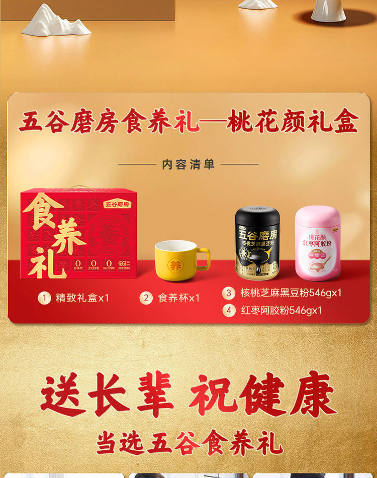 食养礼桃花颜礼盒1092g核桃芝麻黑豆粉红枣阿胶粉代餐送礼