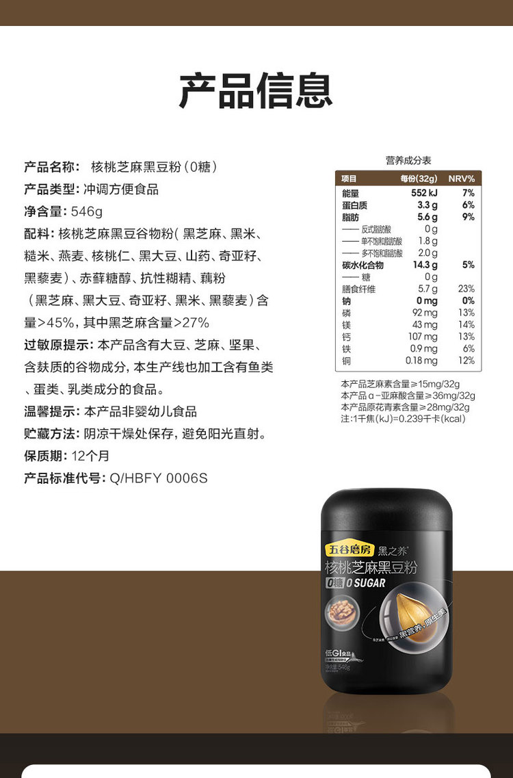 0糖版黑芝麻糊黑豆粉黑芝麻粉546g*2/546g*1