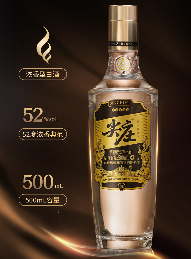尖庄高光52度500mL*6 光瓶装整箱 浓香型白酒纯粮酒水
