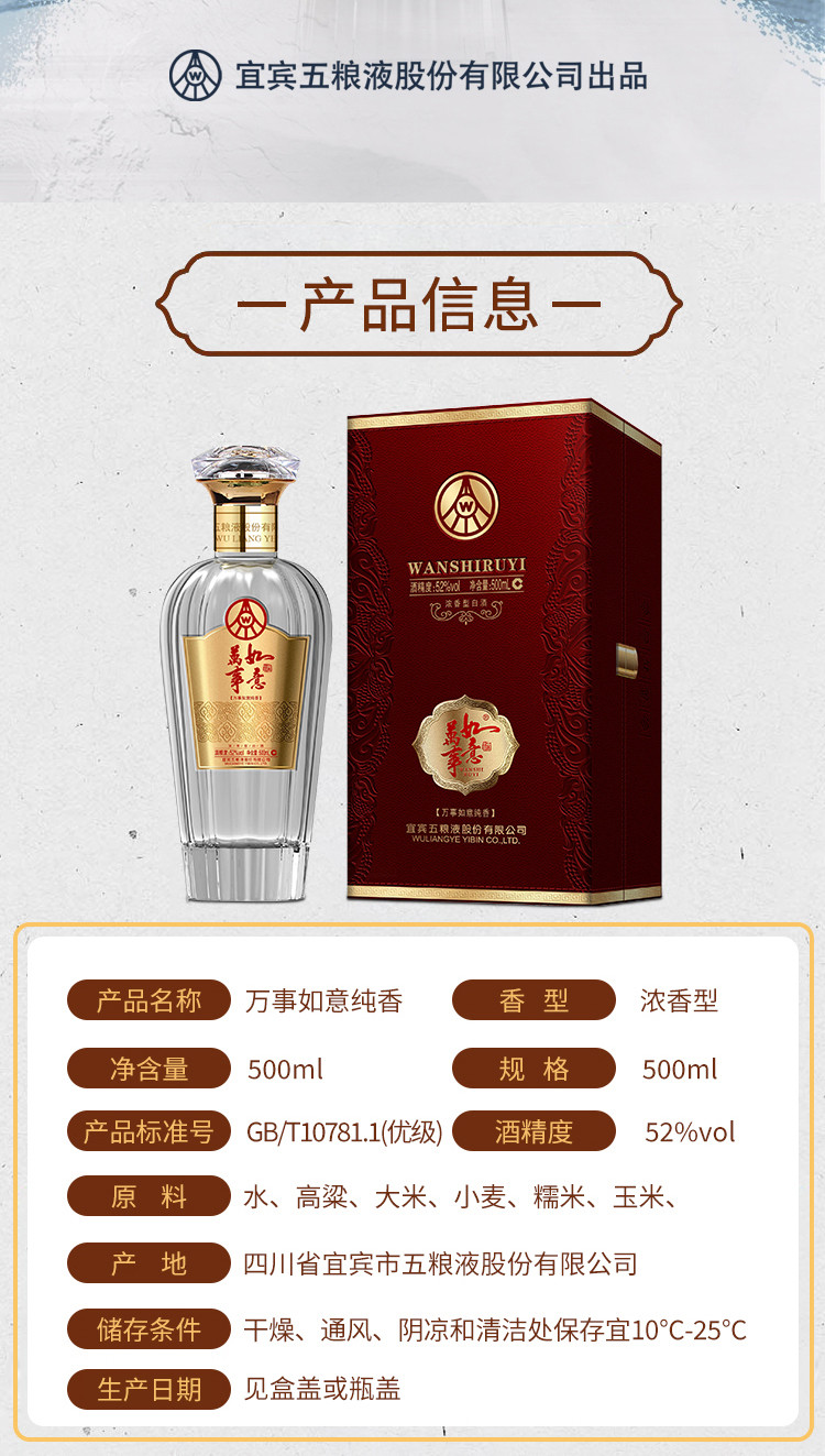 股份 万事如意纯香52度500ml*2瓶 固态法浓香型白酒