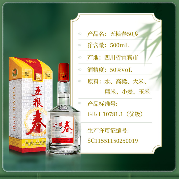 五粮液五粮春第一代50度500mL*6整箱装浓香型白酒
