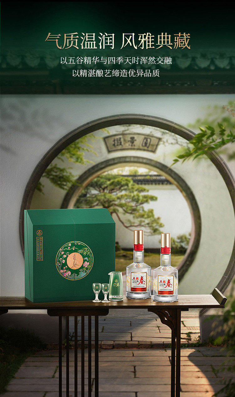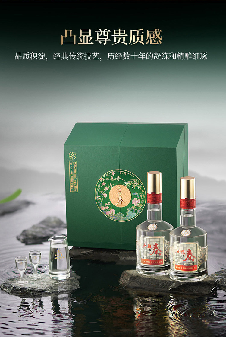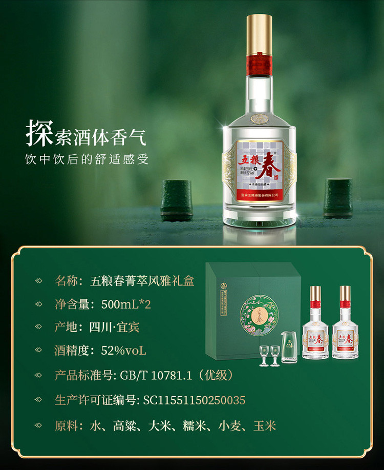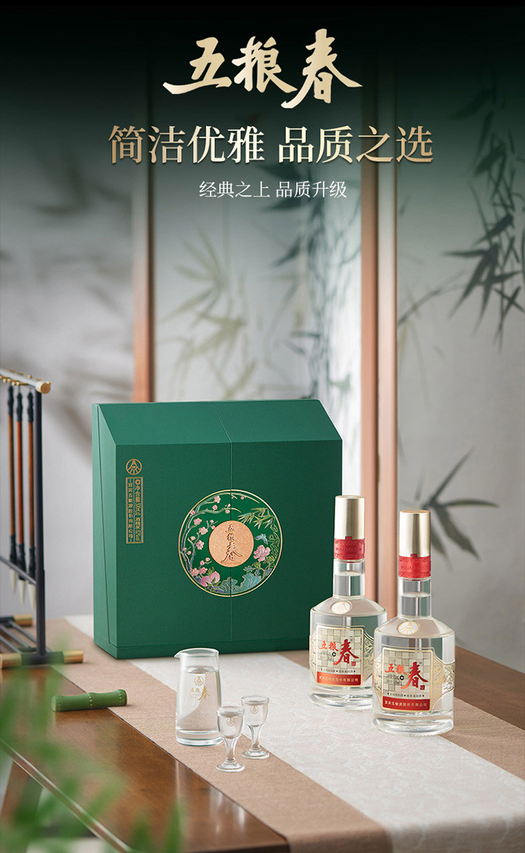 五粮液 五粮春二代春菁萃52度500ml*2瓶礼盒白酒 送礼