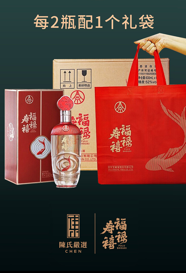 股份 福禄寿禧水静 浓香型白酒 52度 500ml*6瓶
