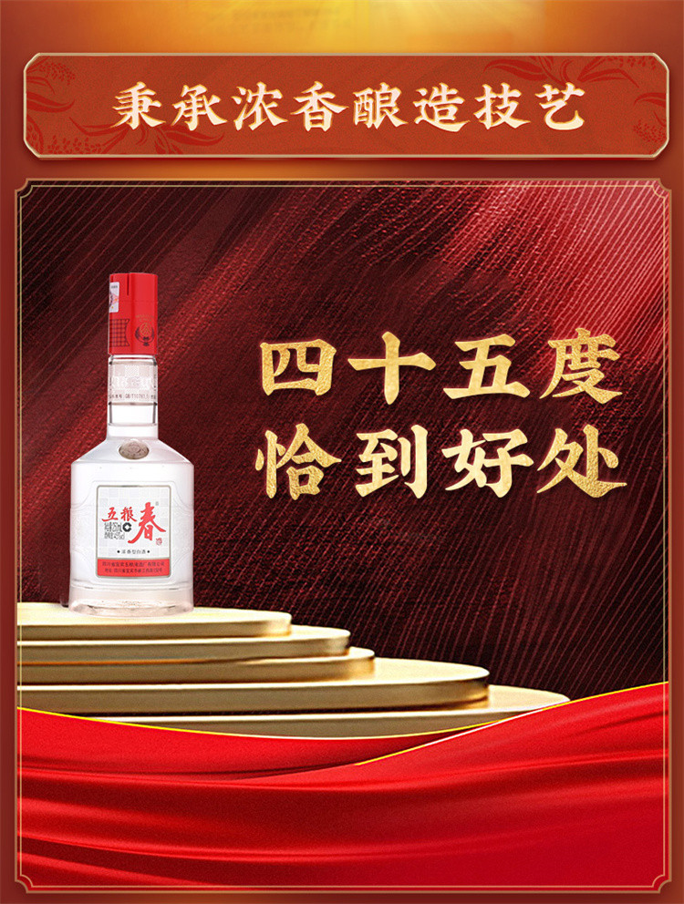 五粮春第一代45度250mL*6瓶 浓香型纯粮白酒酒水