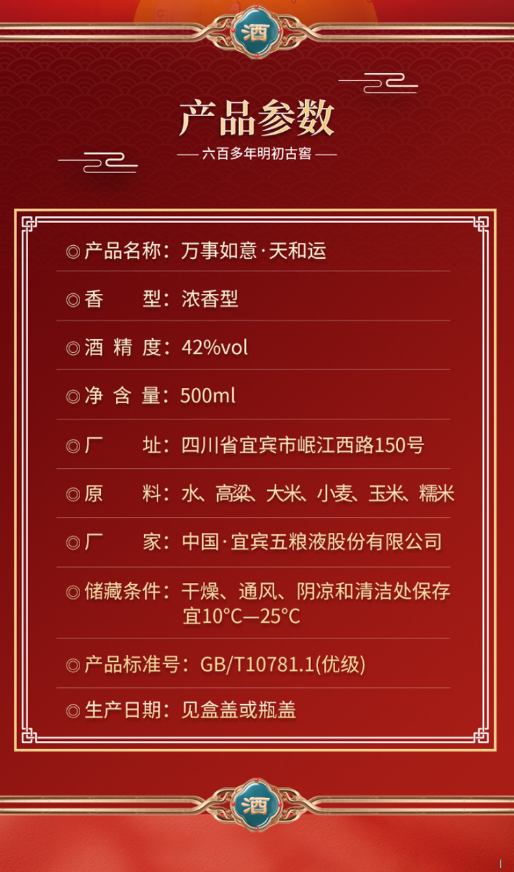 股份 万事如意天和运42度500ml*2瓶 固态法浓香型白酒