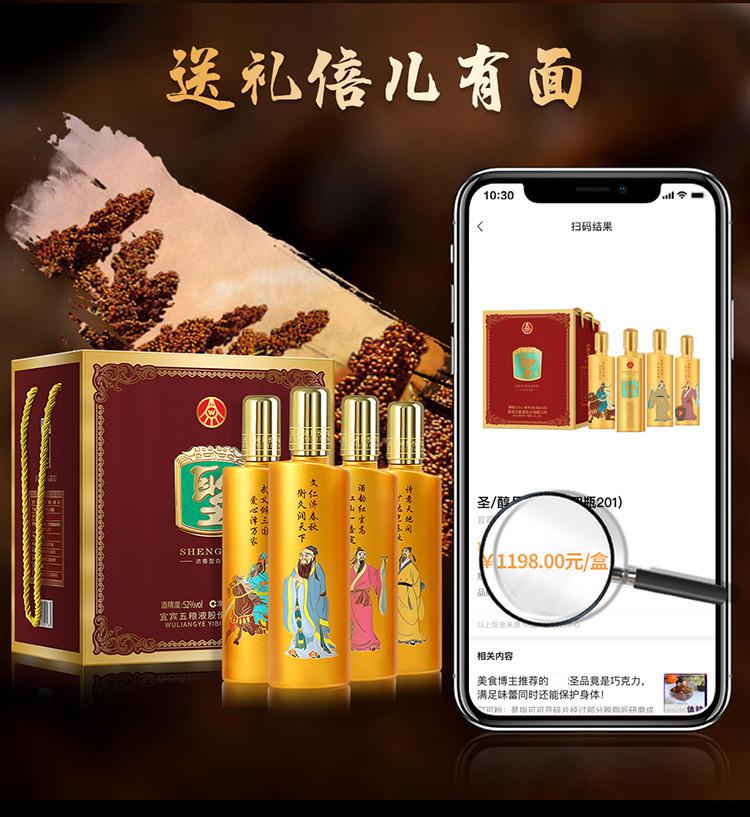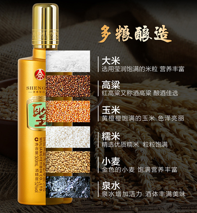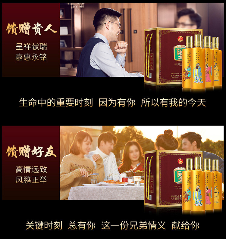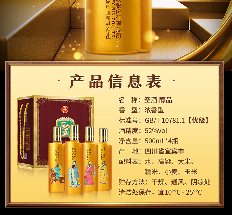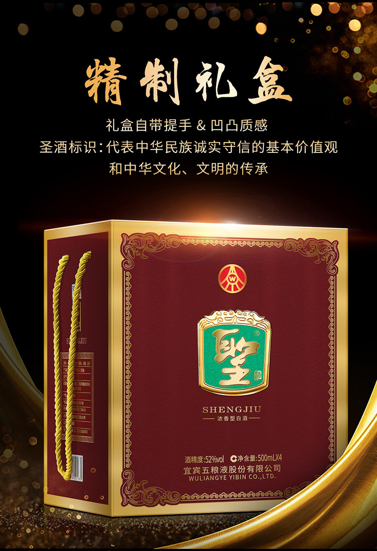 股份 圣酒 醇品金樽 浓香型白酒 52度 500ml*4瓶