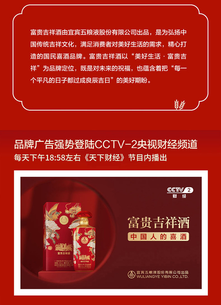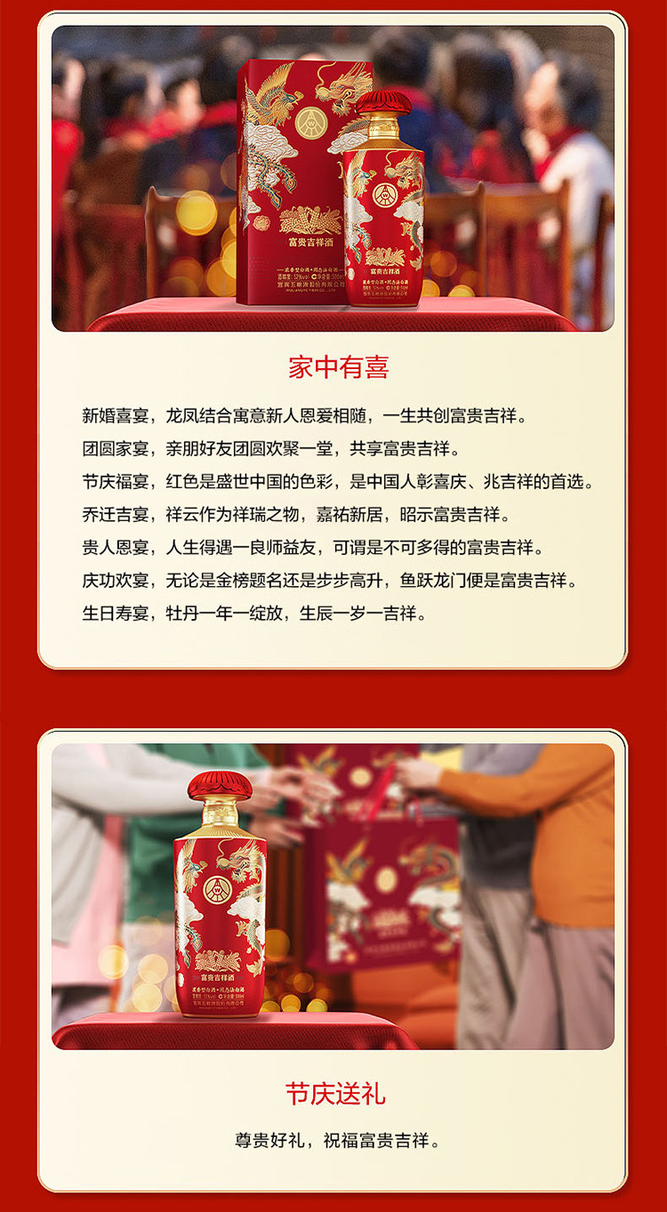 股份 富贵吉祥金装52度500ml*6瓶整箱装 浓香型白酒