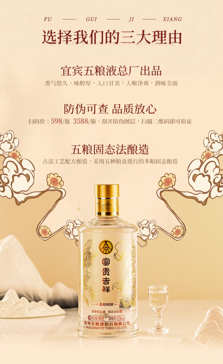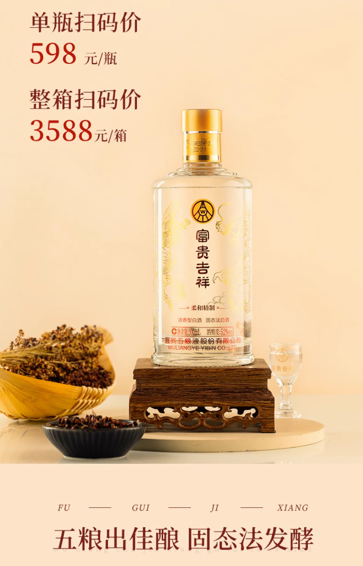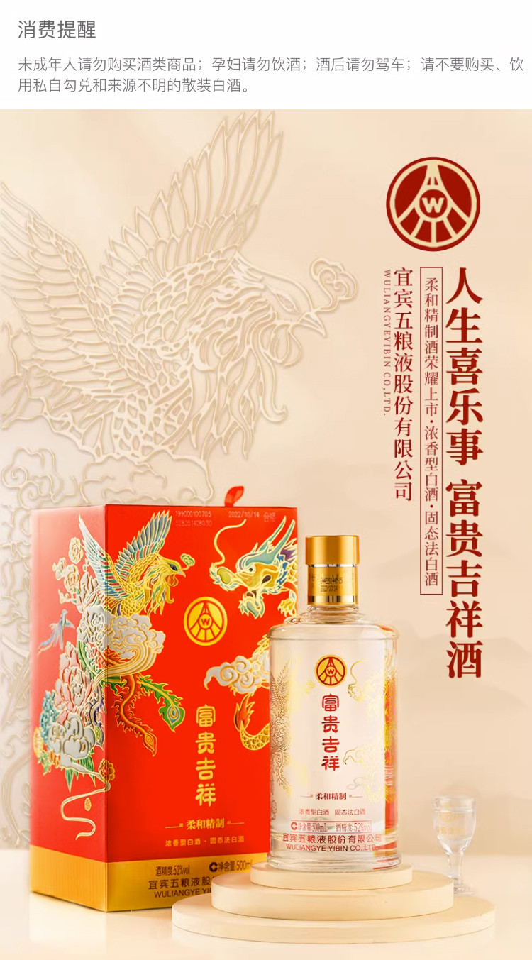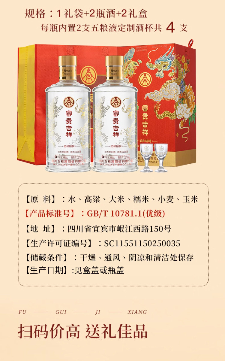 股份富贵吉祥柔和精制52度500ml*2瓶浓香型白酒礼盒送礼