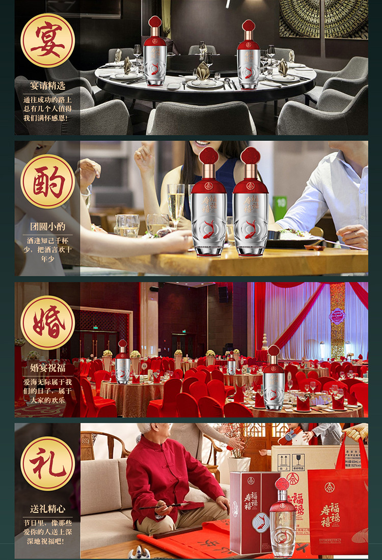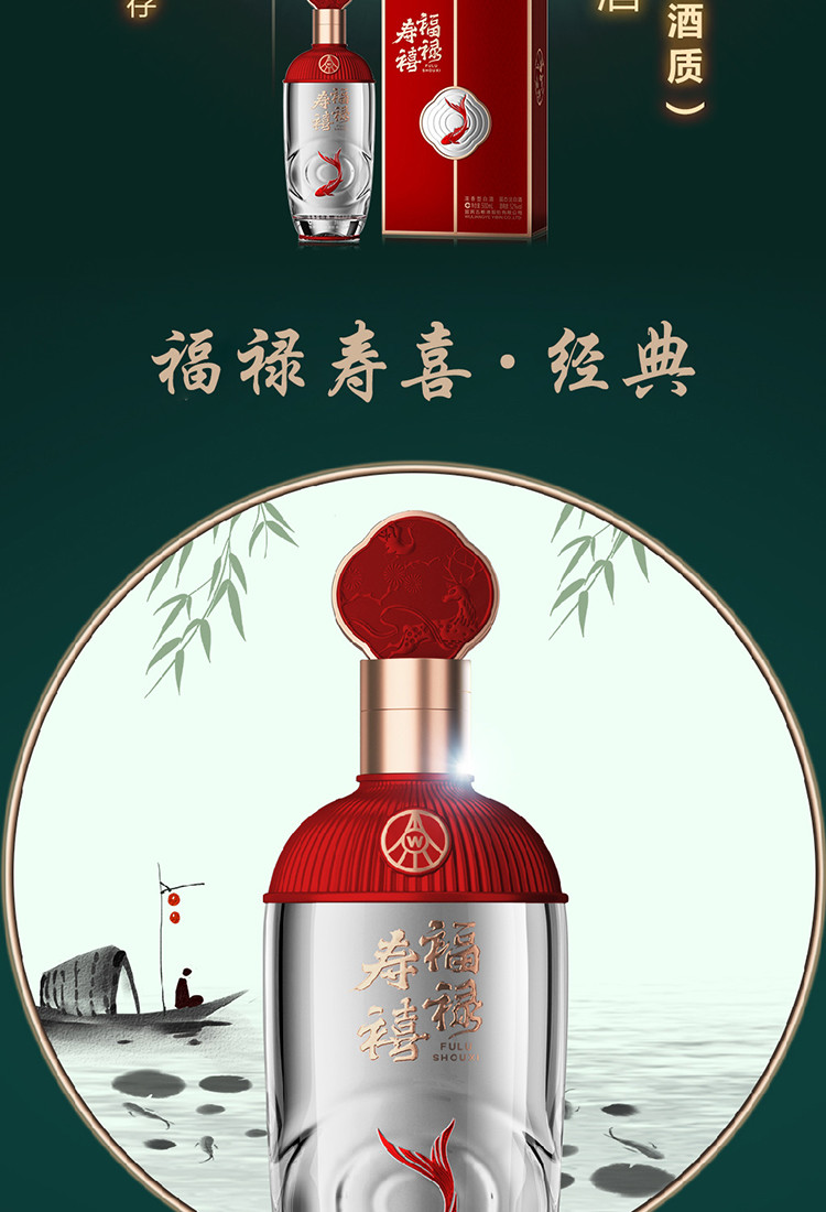 股份福禄寿禧水静 浓香型白酒 52度 500ml*2瓶 中秋
