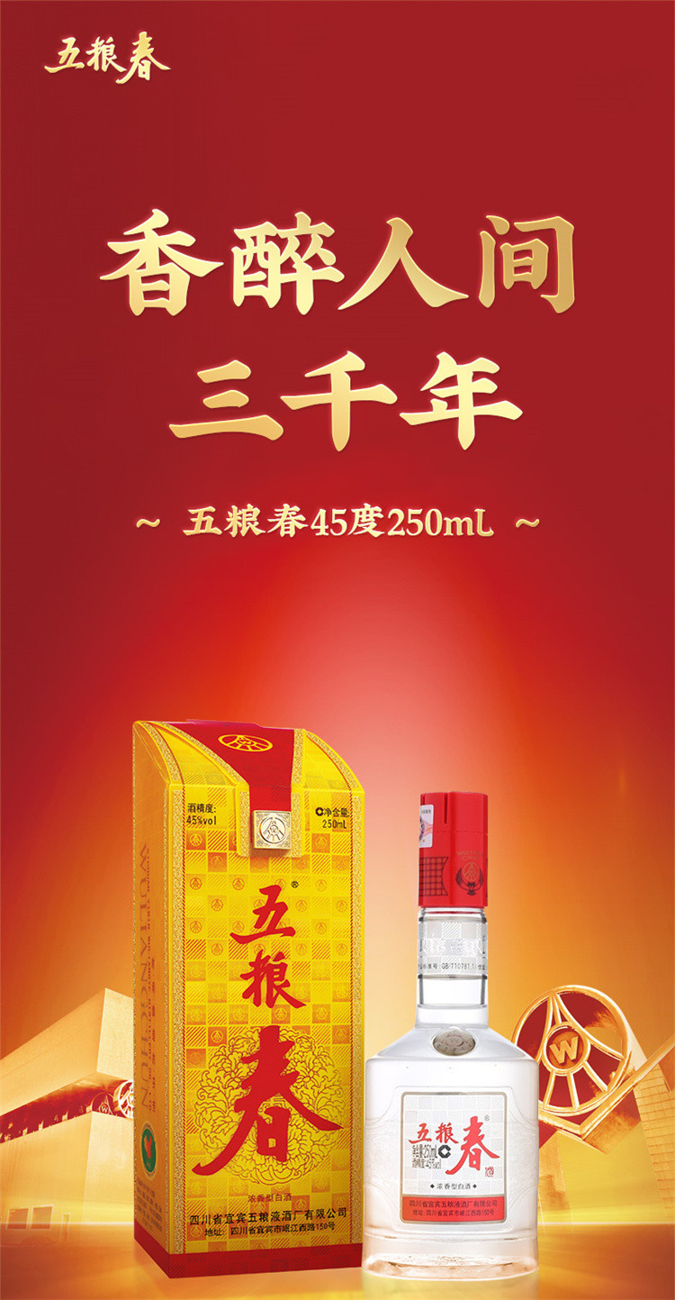 五粮液五粮春第一代45度250mL*2瓶装 浓香型白酒口粮酒