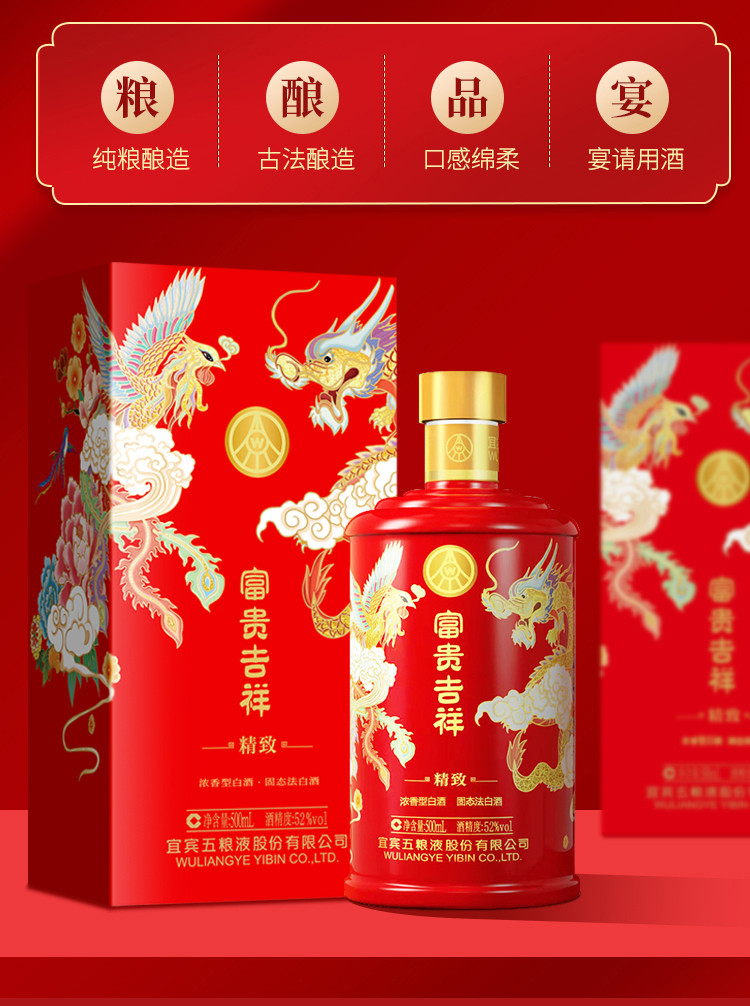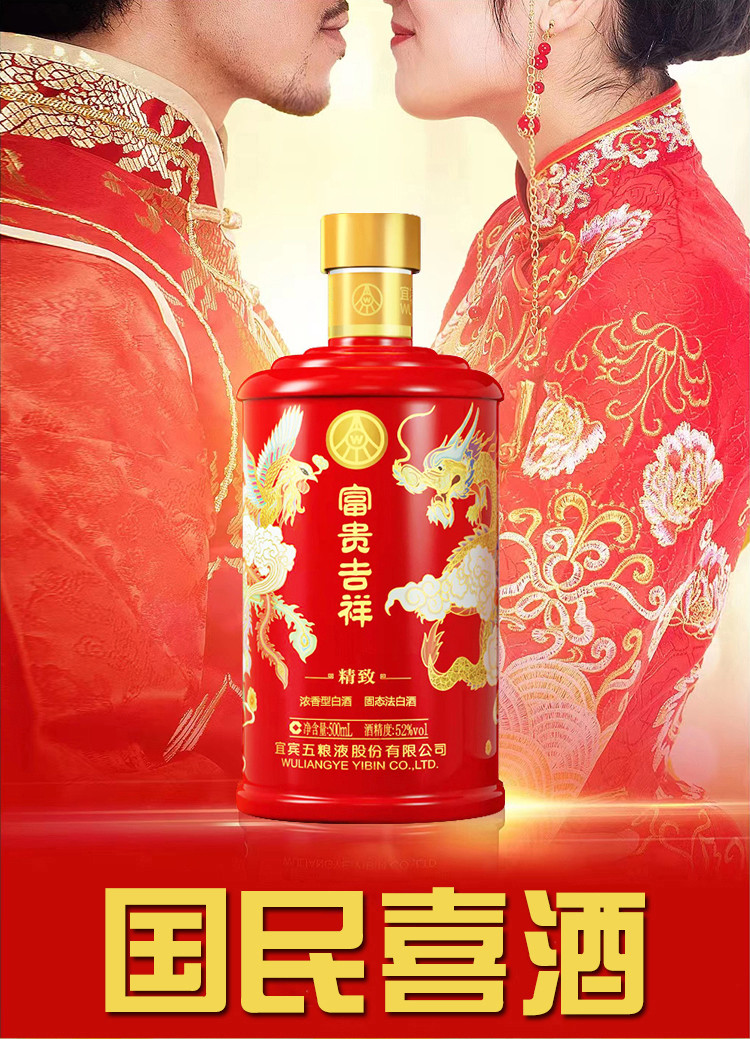 股份 婚宴喜酒 富贵吉祥精致52度500ml*6瓶浓香型白酒