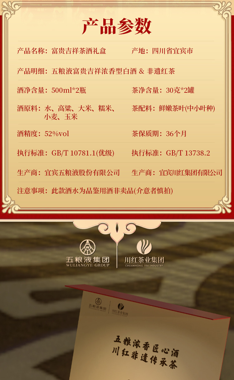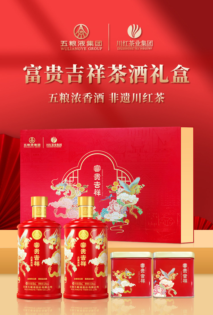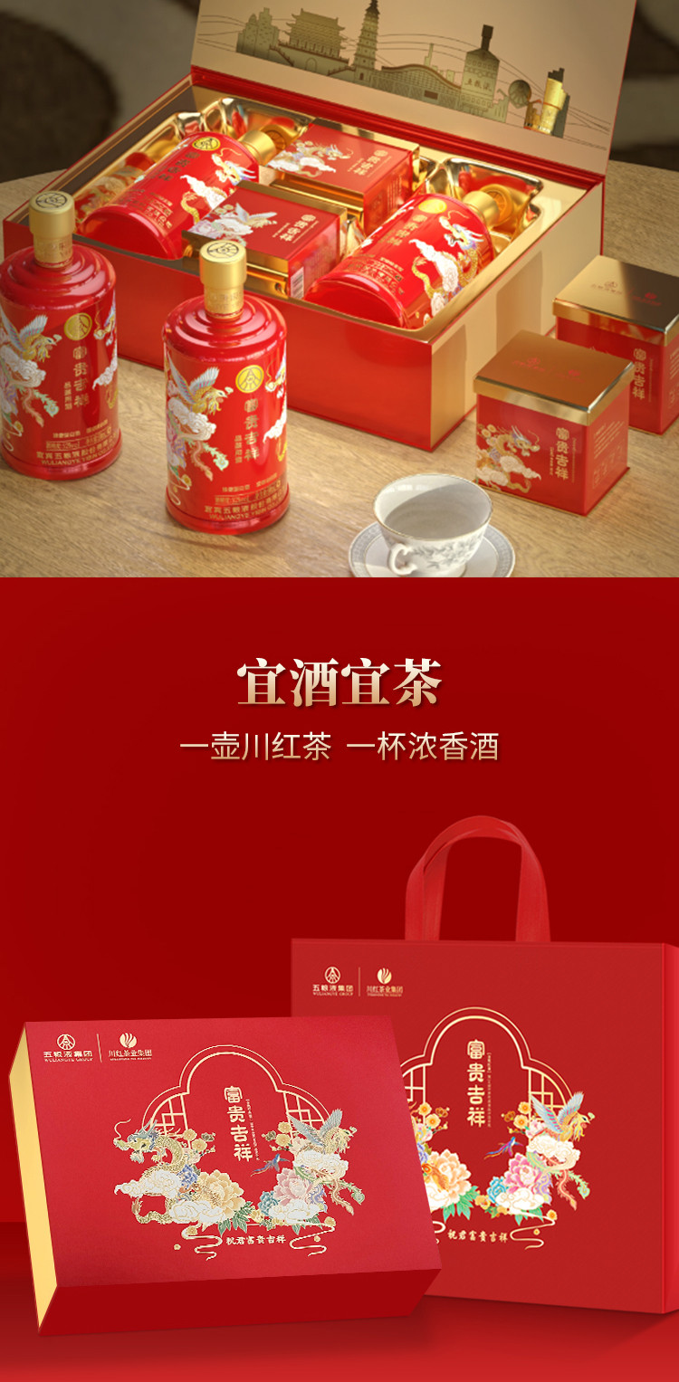 股份富贵吉祥茶酒礼盒52度500ml*2瓶+红茶30g*2罐