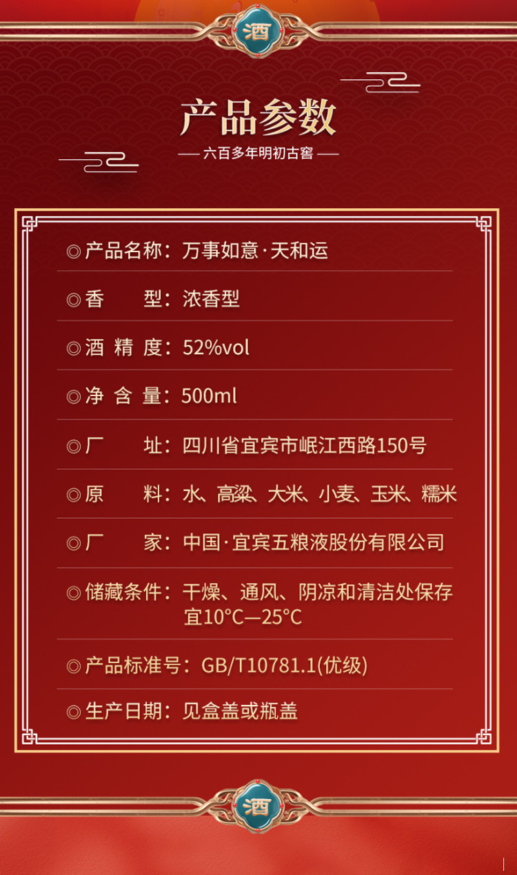 股份 万事如意天和运52度500ml*4瓶 固态法浓香型白酒