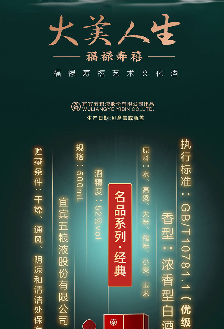 股份 福禄寿禧艺术文化酒经典 浓香型52度500ml单瓶宴请
