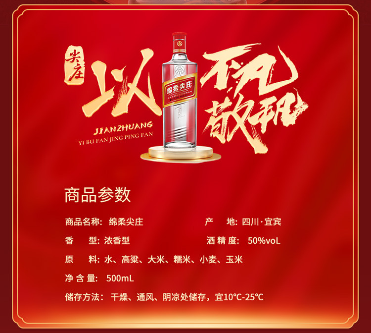 尖庄绵柔光瓶 50度500mL*12瓶整箱浓香型白酒聚会宴请