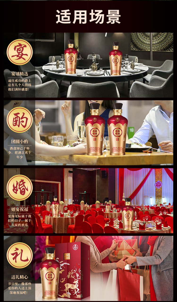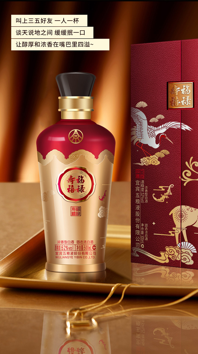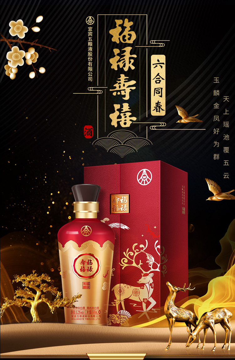 股份福禄寿禧 六合同春 浓香型白酒 52度 500ml*2瓶