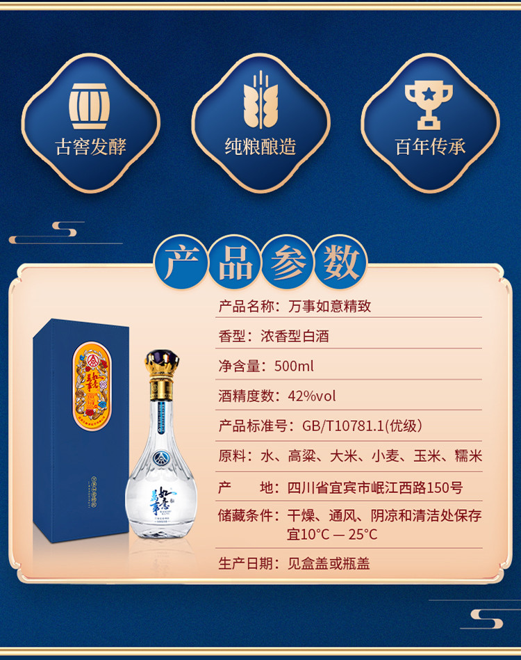 股份 万事如意精致42度500ml*2瓶浓香型白酒 礼盒送礼