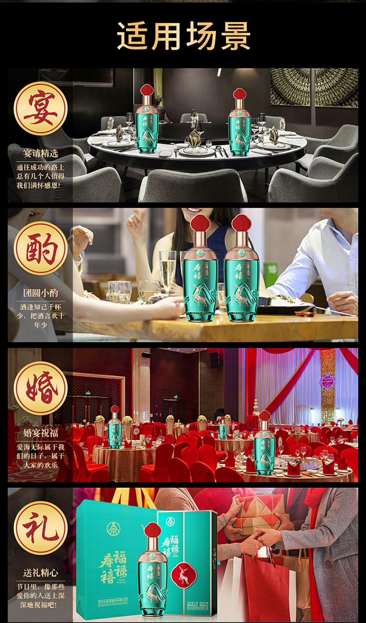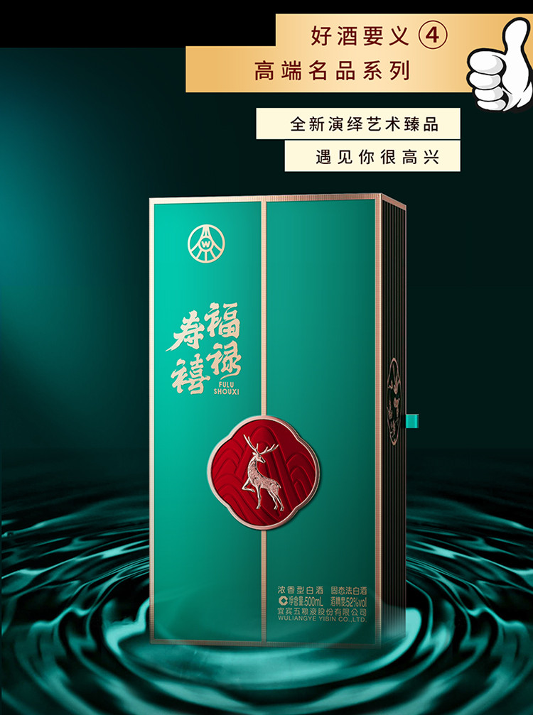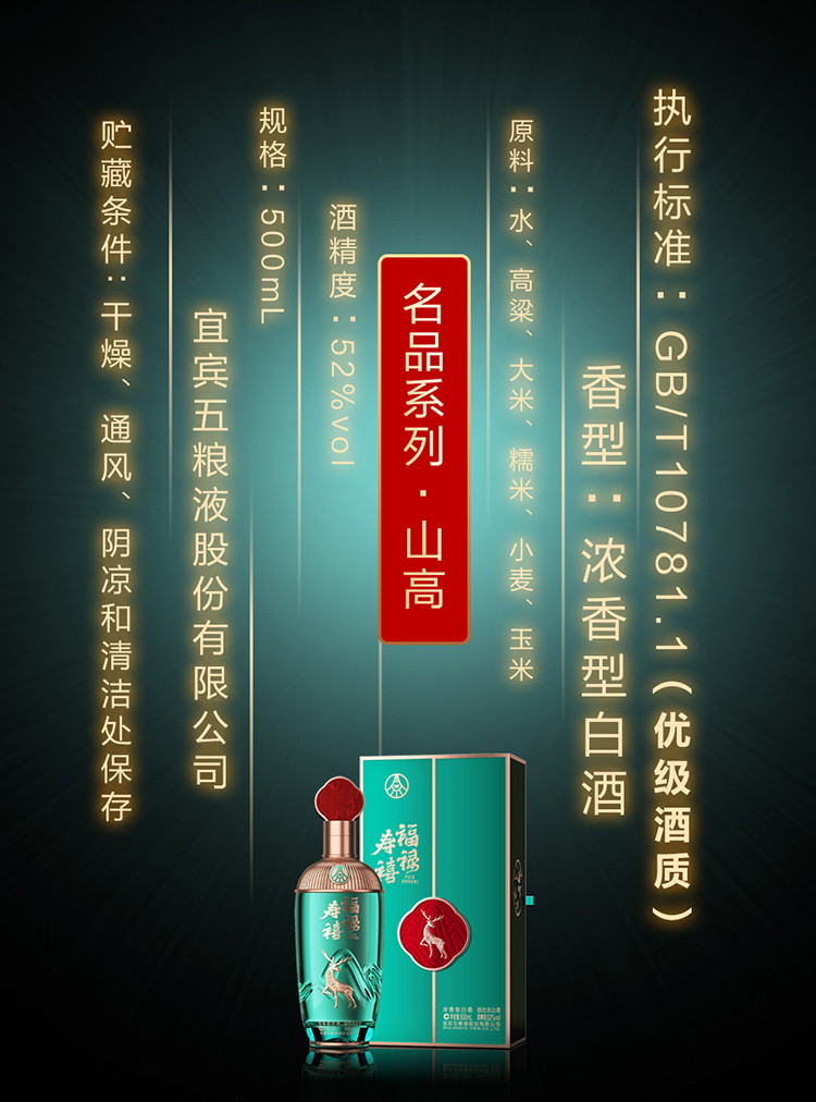股份福禄寿禧山高 浓香型白酒 52度 500ml*2瓶商务