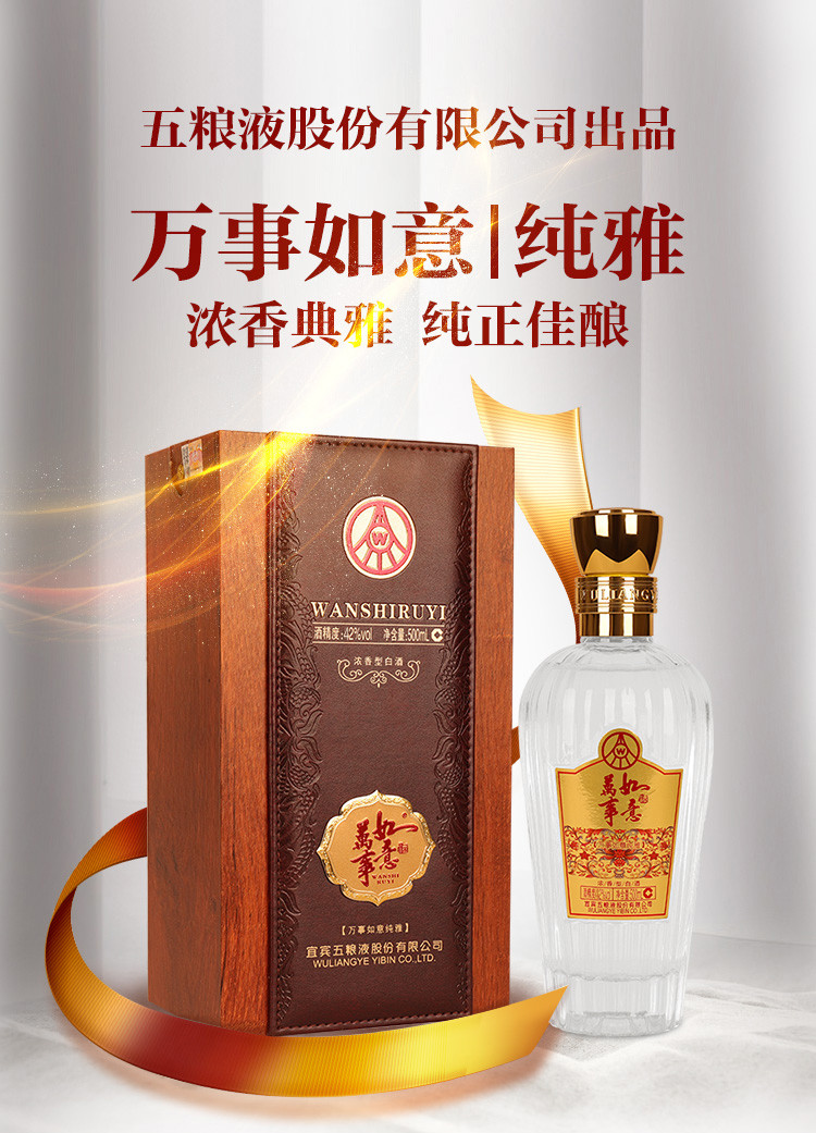 股份 万事如意纯雅42度500ml*6瓶浓香型白酒 礼盒送礼