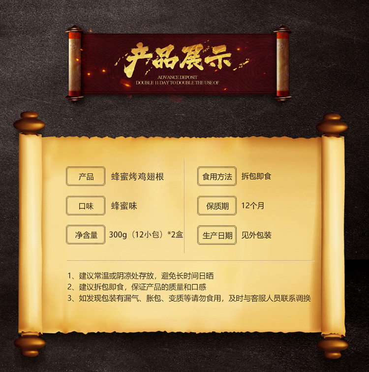 【爆款组合】300g蜂蜜鸡翅根*2盒独立包装美味零食下酒菜