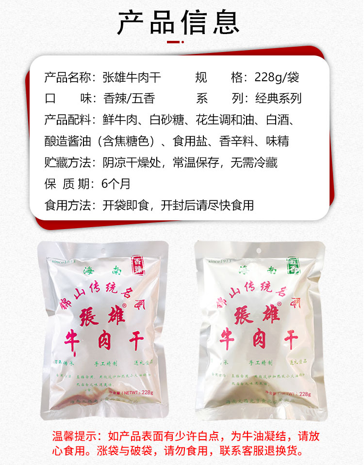 海南特产张雄牛肉干经典版香辣味228g*2