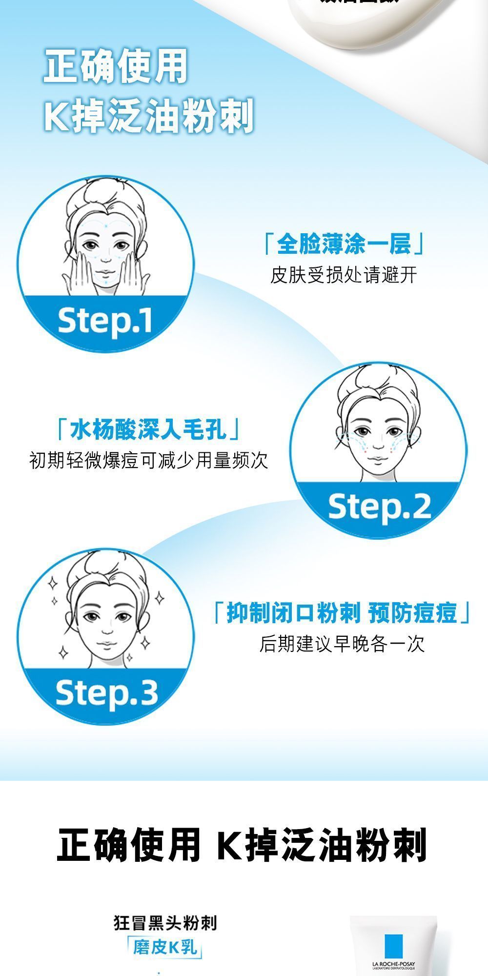 每日早/晚洁面后,取适量产品均匀涂抹于整个面部。