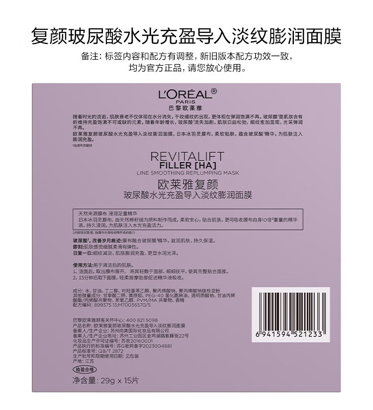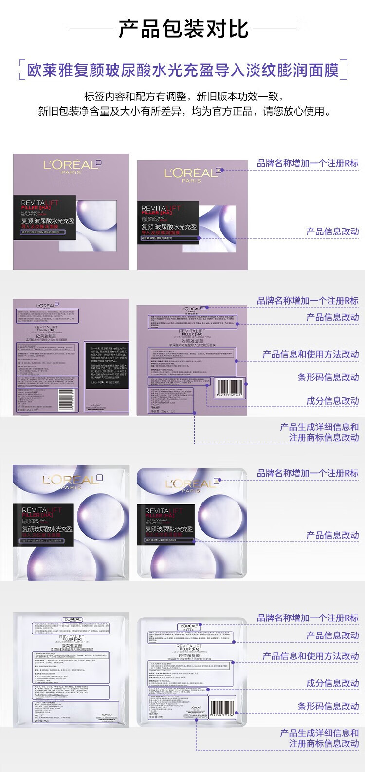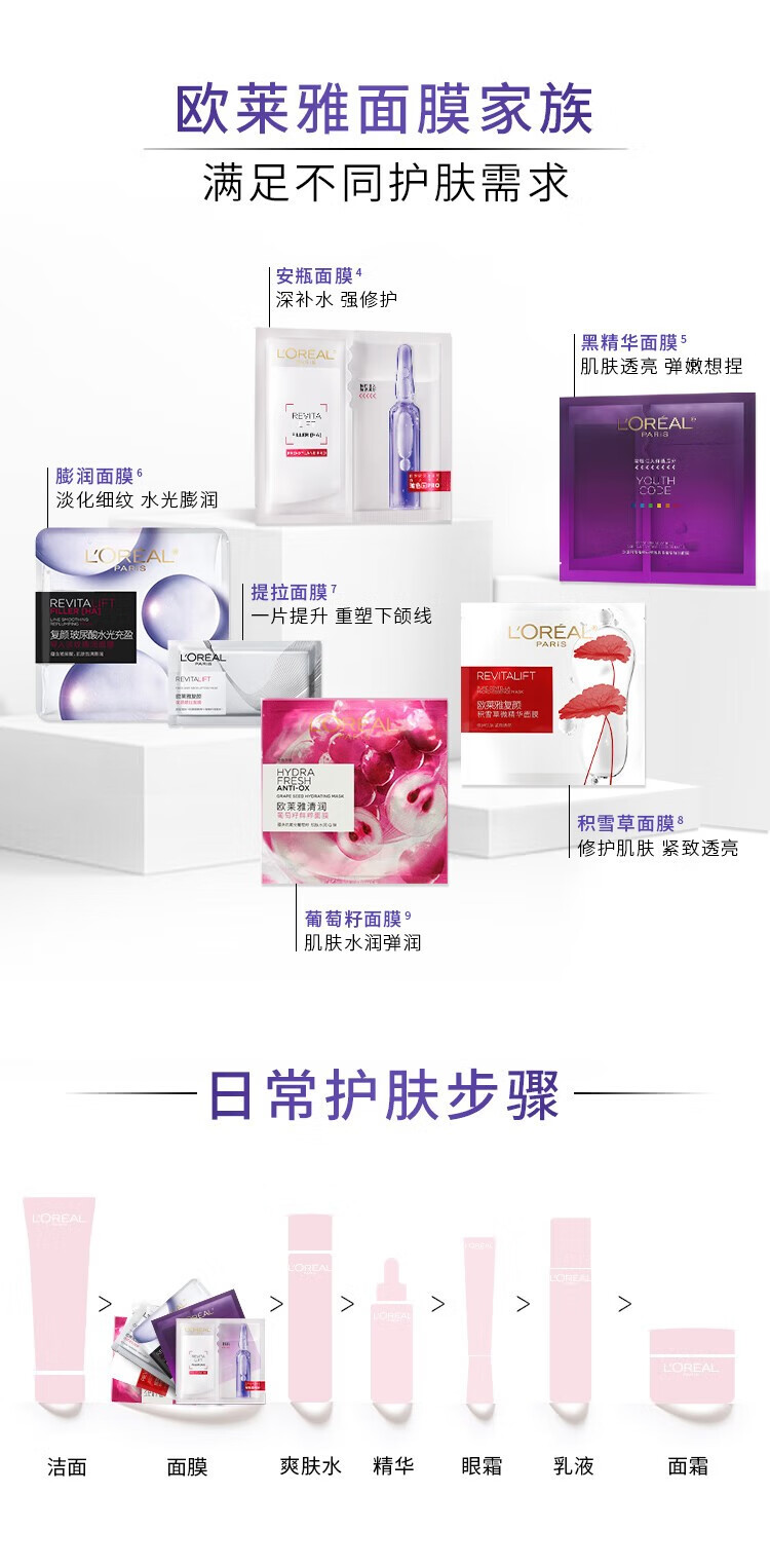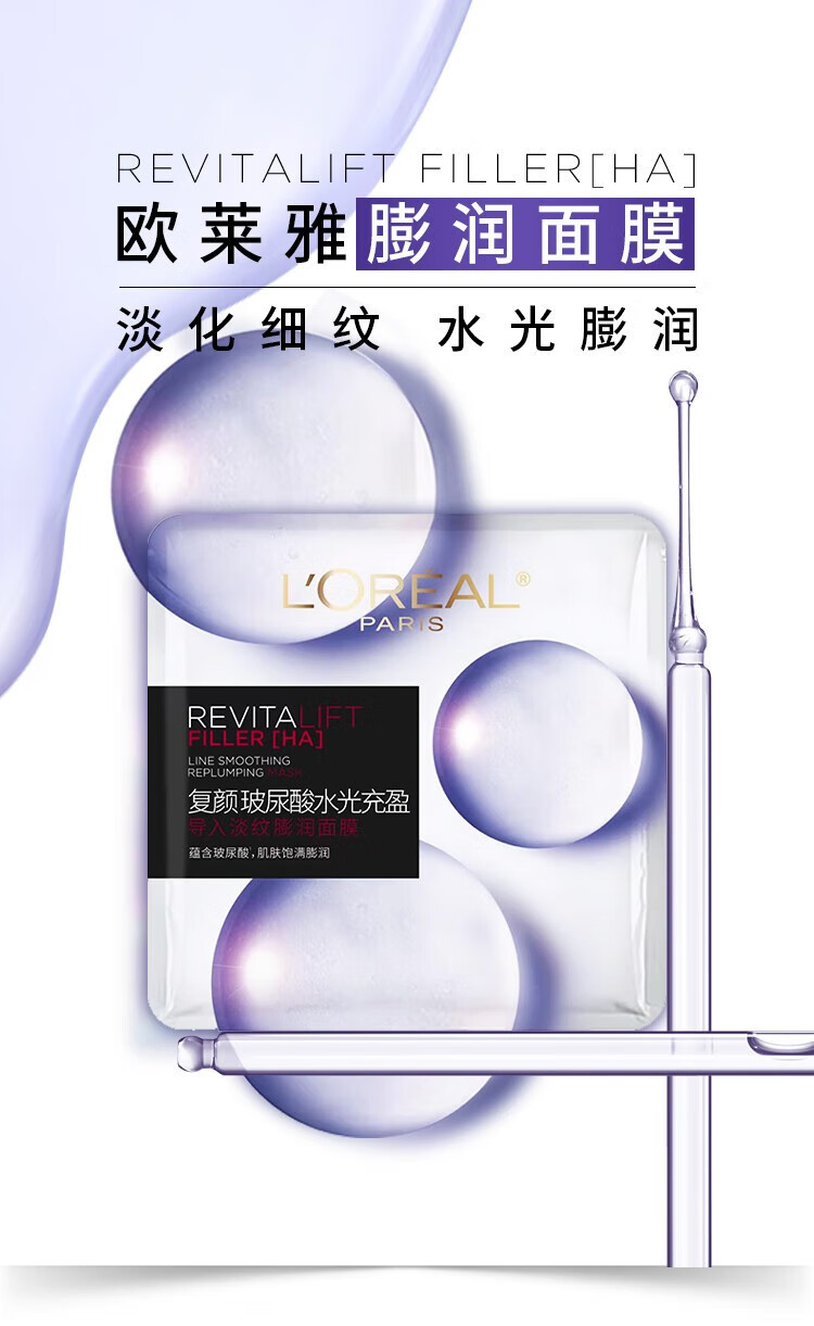欧莱雅 复颜玻尿酸水光充盈导入淡纹膨润面膜效期至26年12月
