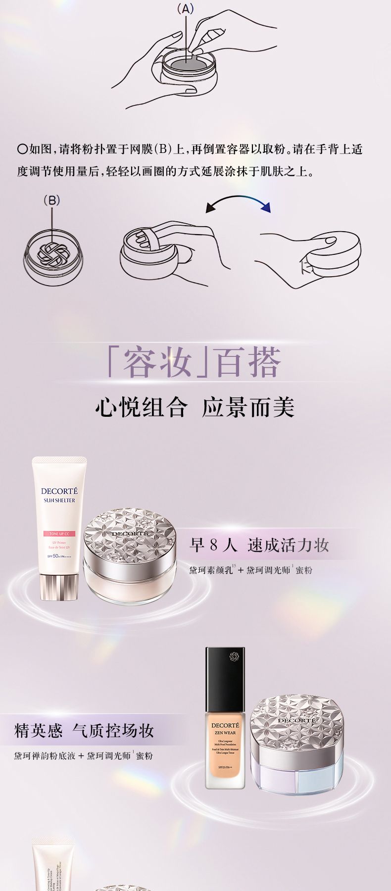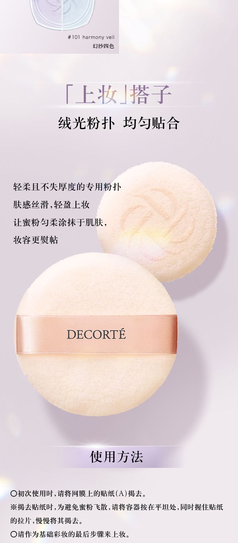 使用时请用粉扑按住网膜口,将容器倒置取粉。