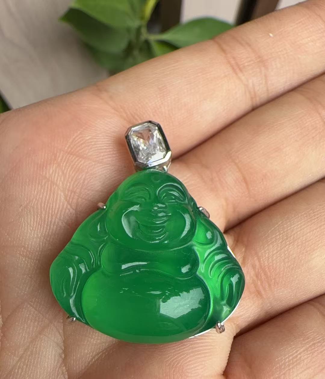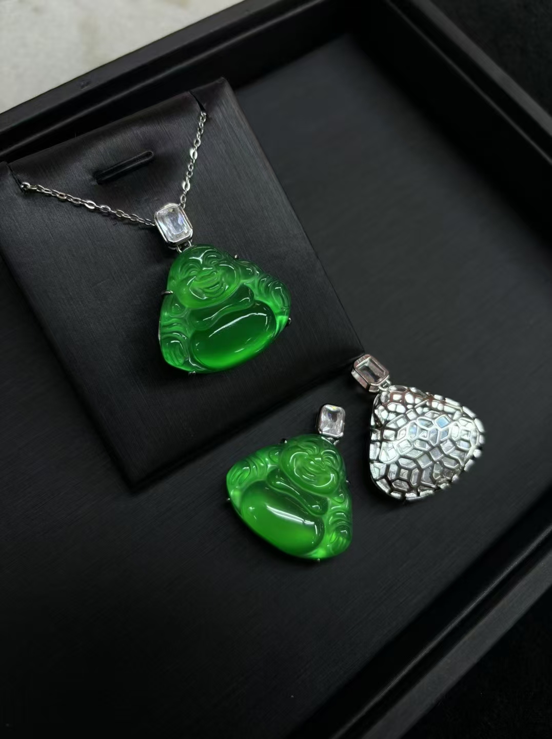 [能量佛]入是今珠宝0092马料绿玉髓吊坠925银镶嵌国风新中式