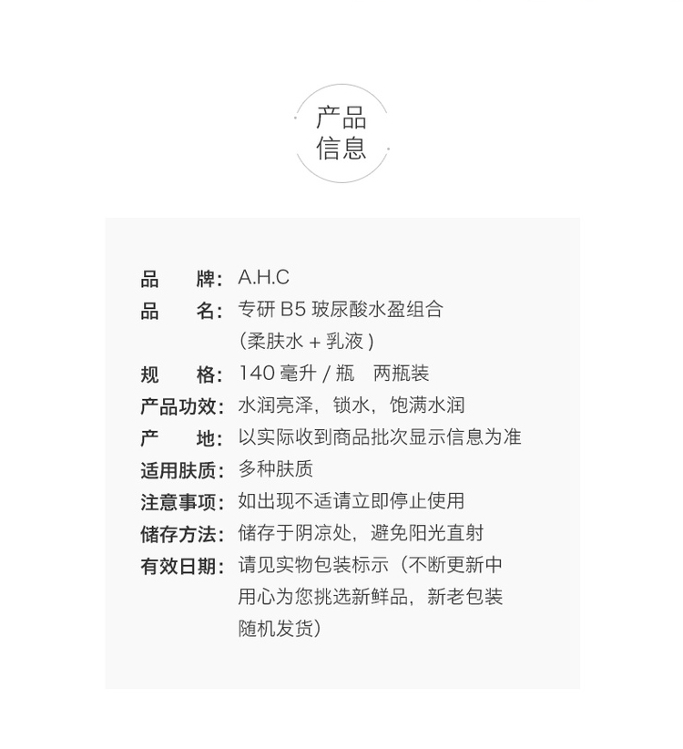 爱和纯 B5玻尿酸水乳套装140ml+140ml效期至26年12月