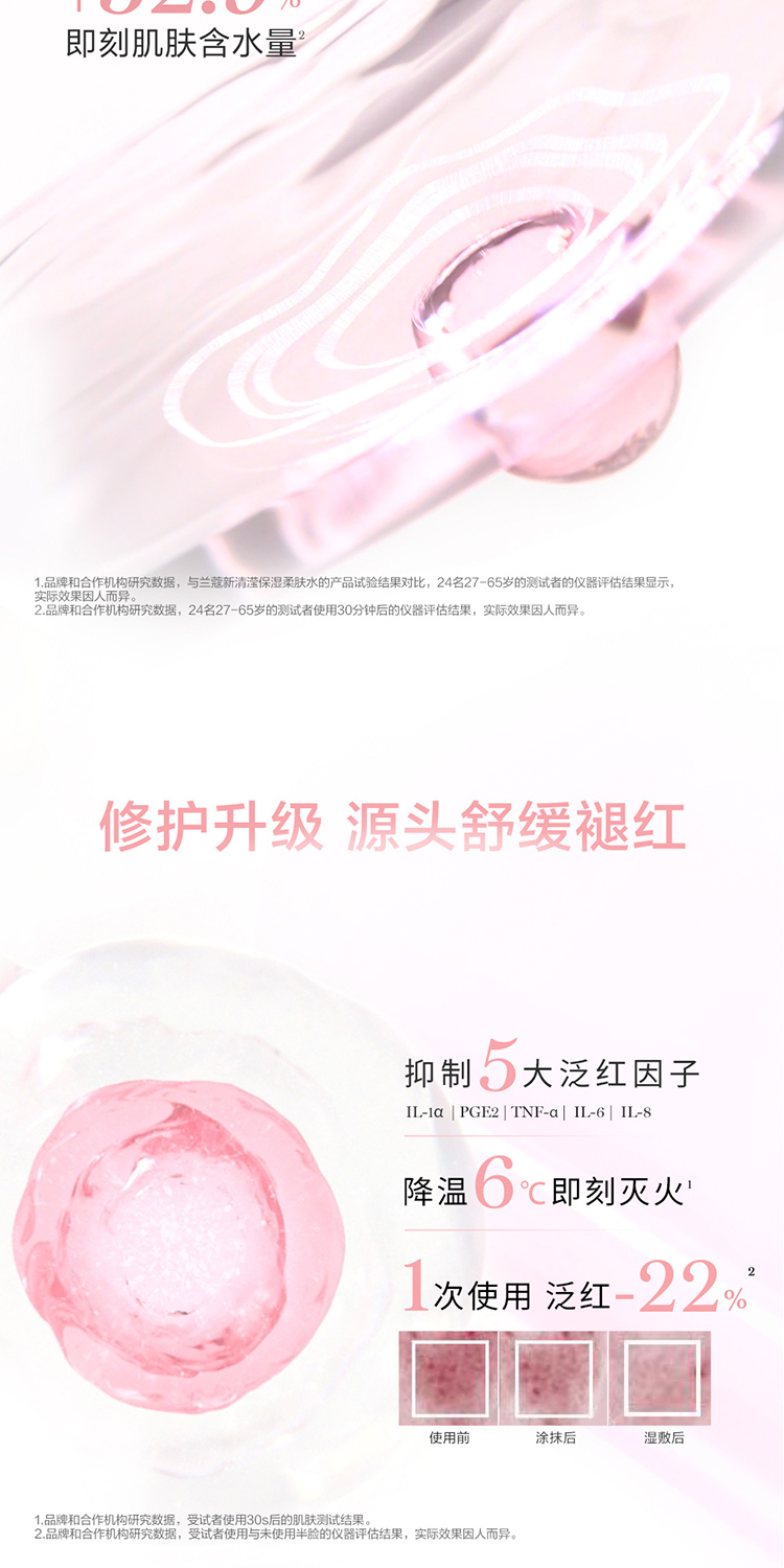 带来双倍补水功效*,一瓶见效,舒缓肌肤泛红**。