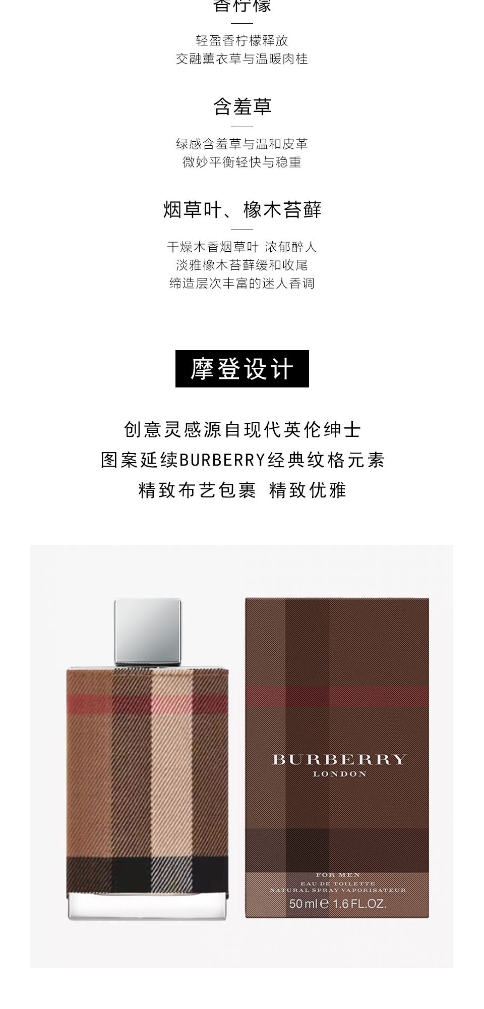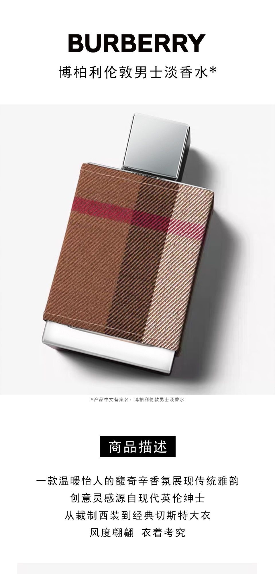 博柏利伦敦男士EDT香水100ml【简装】