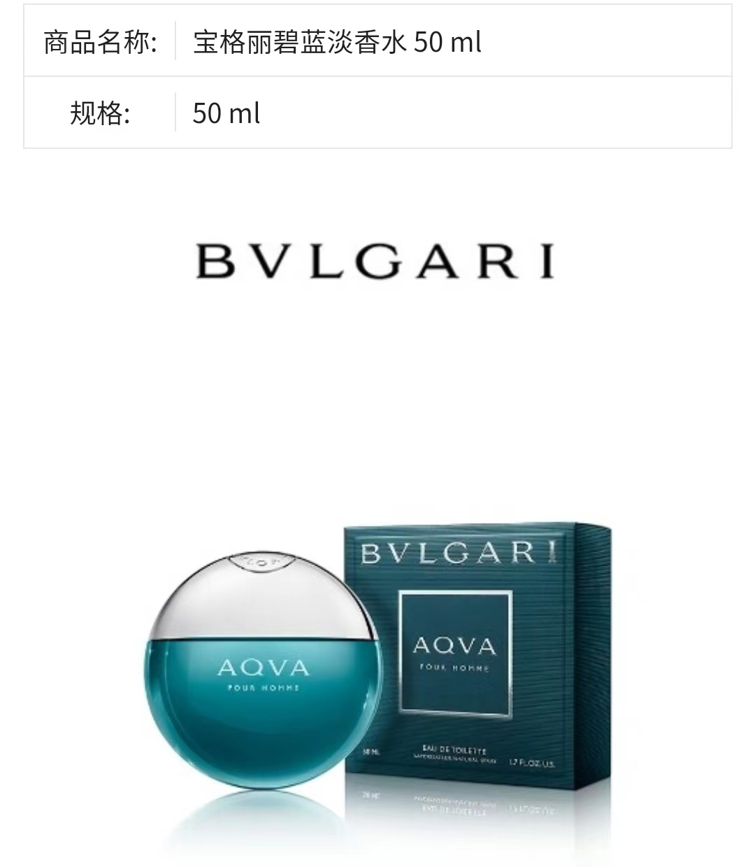 宝格丽碧蓝淡香水 50ml
