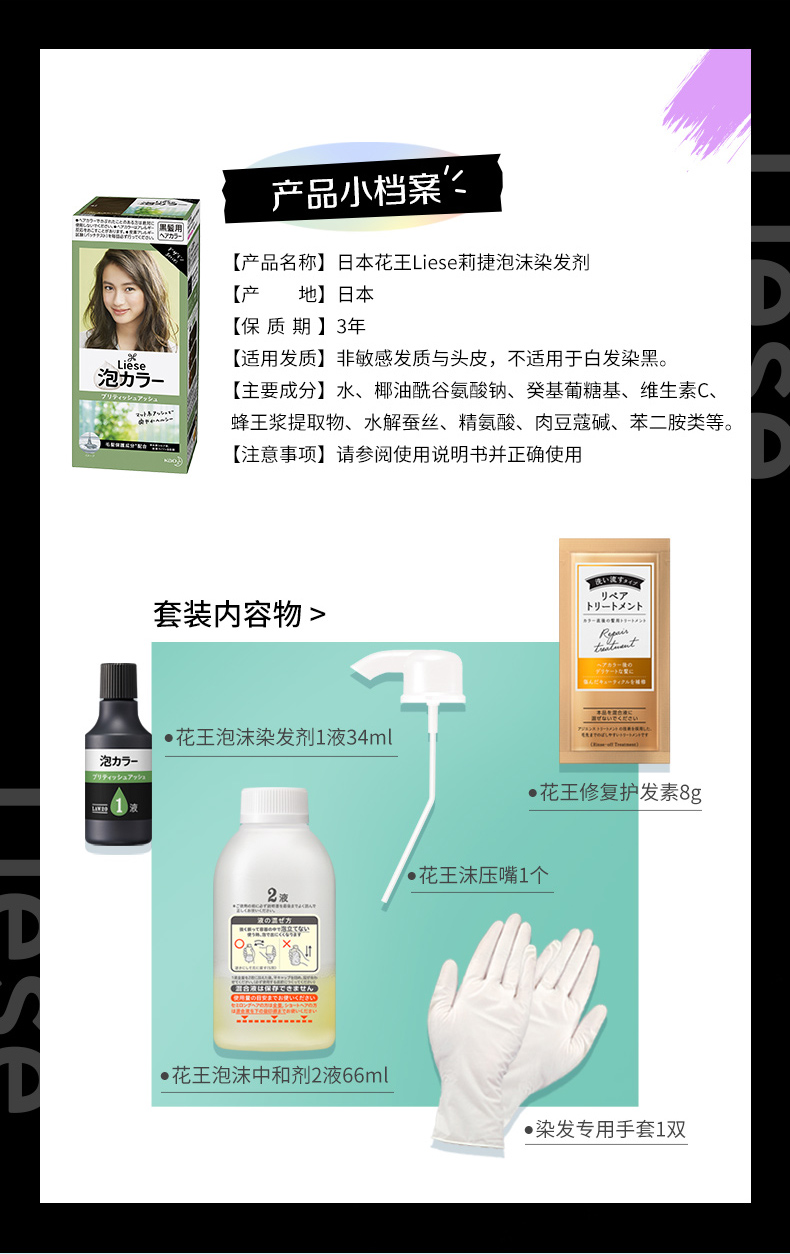 [清仓]KAO花王 Liese莉婕泡沫染发剂 加州米黄 108ml