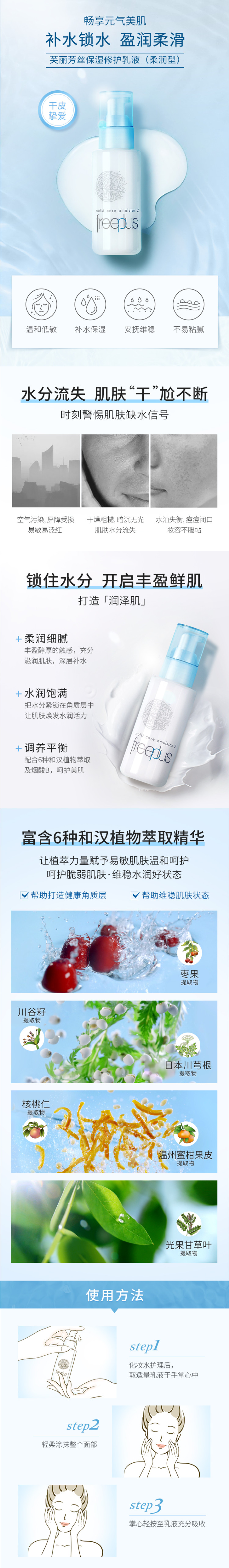 [清仓]Freeplus芙丽芳丝 净润保湿修护乳液 滋润型 100ml 效期至26年10月(A048 250)