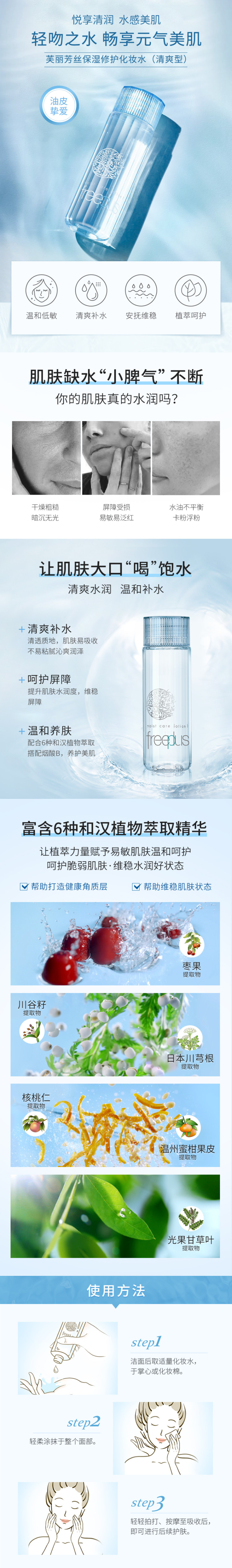 [清仓]Freeplus芙丽芳丝 净润保湿修护化妆水 清爽型 130ml 效期至26年10月