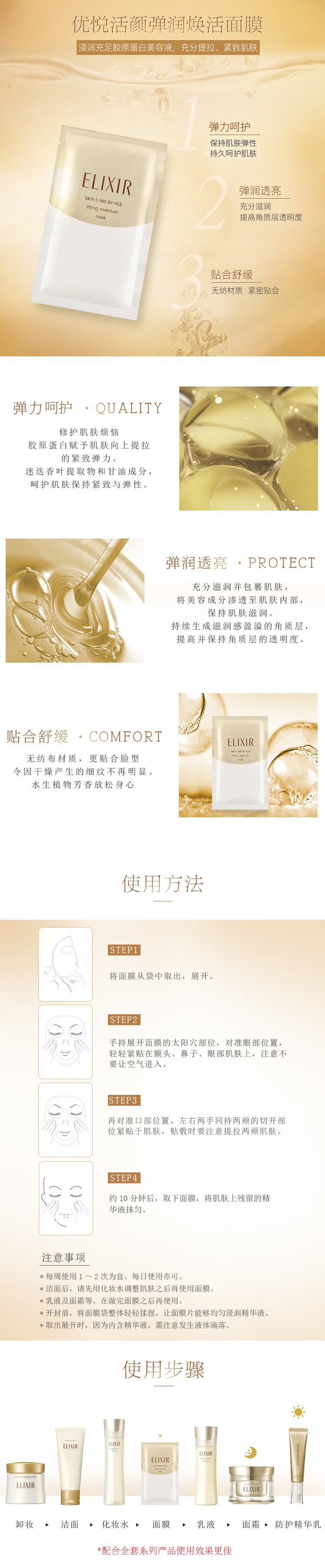[清仓]Elixir怡丽丝尔 优悦活颜柔滑弹润保湿面膜 6片