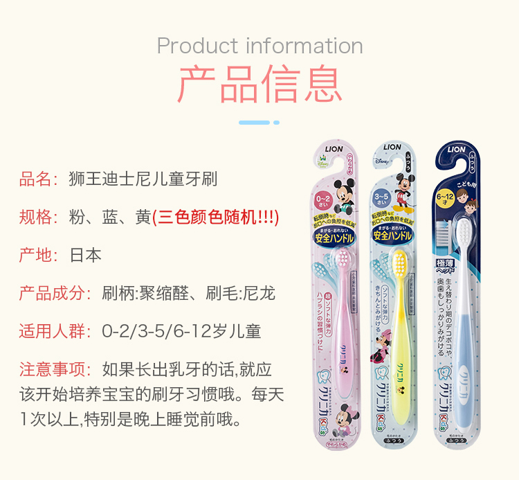 [清仓]LION狮王 迪士尼可弯曲软毛儿童牙刷 3-5岁1支颜色随机发货