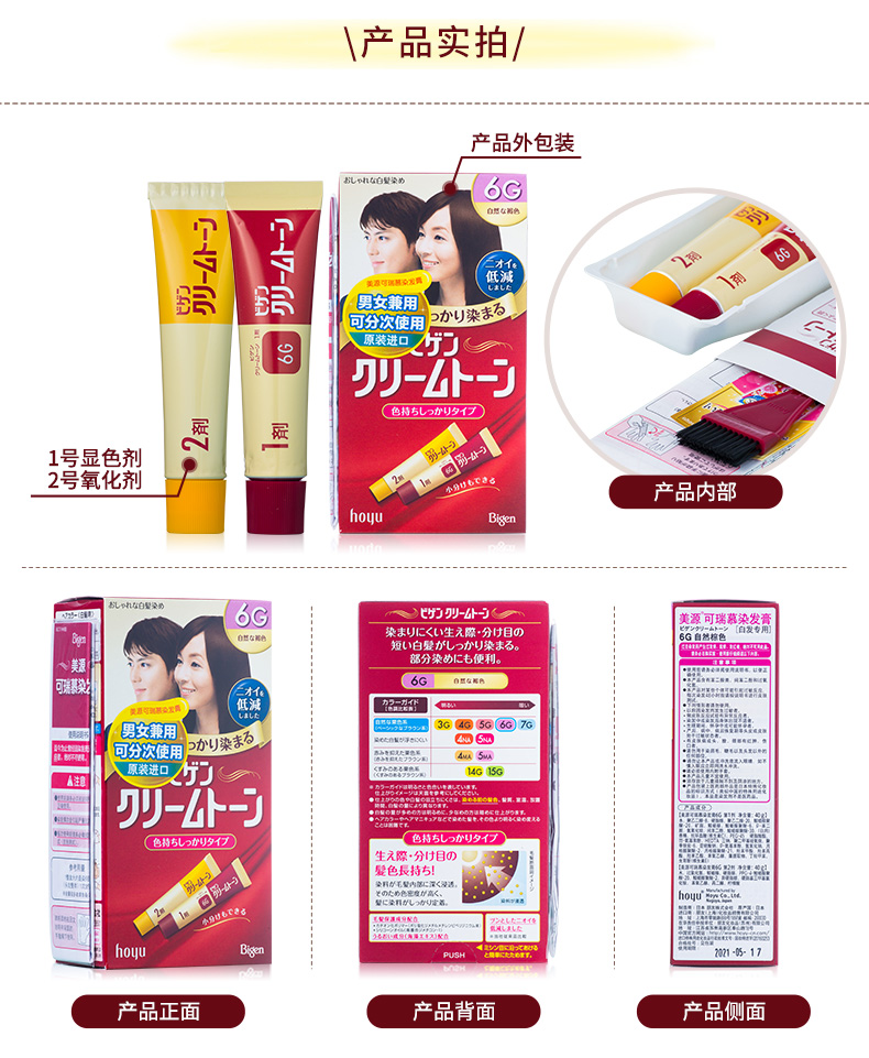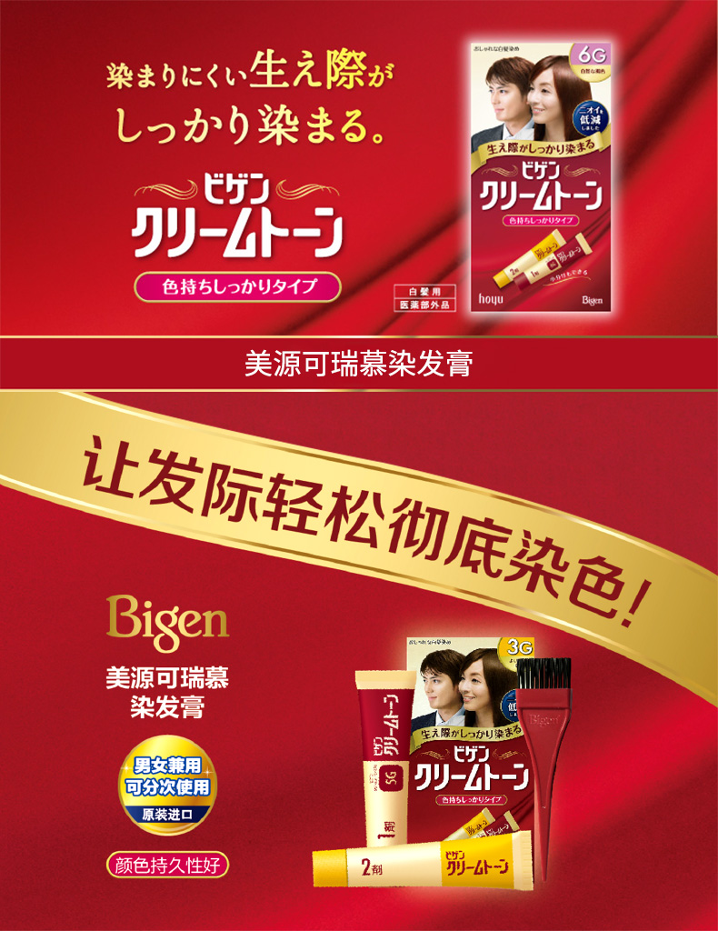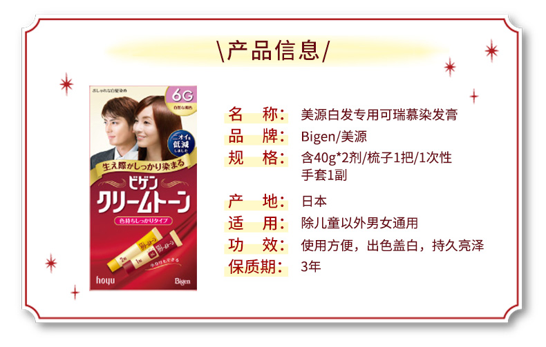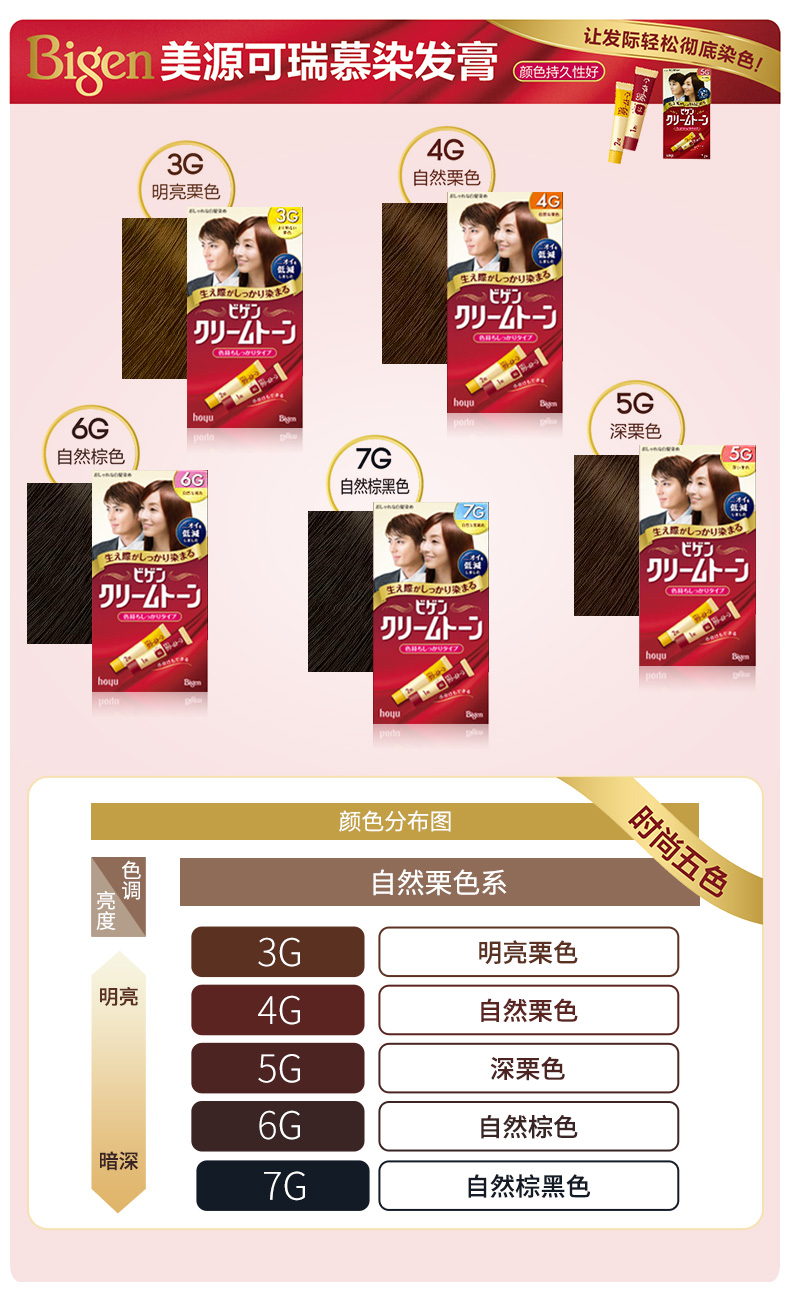 [清仓]HOYU美源 Bigen可瑞慕纯植物染发膏 4G自然栗色 40g*2